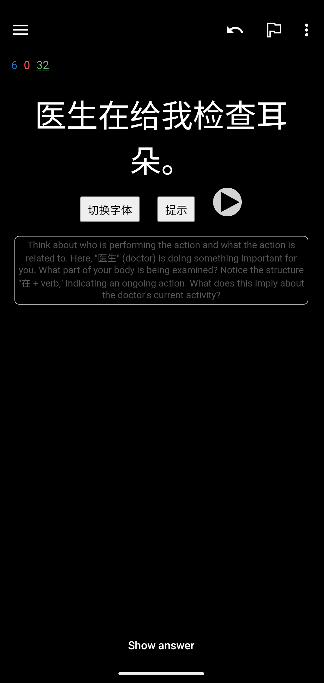 { role: "developer", content: "You are a language helper. Give a hint for this Chinese sentence without translating it." },